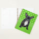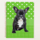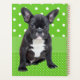 Bulldog francés lindo con la bolsa de regalos de Polka verde pimienta. Una linda foto del Bulldog francés con fondo verde y puntos de polka.