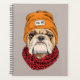 Este diseño presenta un retrato de bulldog en un gorra hipster y con bufanda de punto.