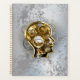 Cabeza conceptual, mecánica, humana con manómetro antiguo y engranajes metalizado sobre fondo industrial gris. Estilo Steampunk.