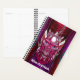 Planner diario de escuela de aspecto futurista, con ilustraciones gráficas de una cabeza de robot roja y rosa metálica con corrientes eléctricas que suben y bajan de ella. El texto personalizado, en la parte inferior, está listo para personalizar para leer lo que desee.