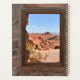 Vista interior de cabaña del Valle del Fuego mirando la arenisca azteca de color rojo brillante en el parque estatal. 100% Personalización. Haga clic en el botón PERSONALIZAR para agregar, mover, eliminar, cambiar el tamaño o cambiar cualquiera de los tipos de letra o gráficos.