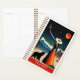 Descubra el encanto de "California: La tierra de los sueños" con este impresionante diseño de planificación. En esta escena encantadora, una mujer con un vestido vibrante y un gorra de gran formato se alza junto a un oso, ambos mirando al cielo estrepitoso de la noche adornado con planetas y estrellas. El entorno ofrece majestuosas montañas nevadas y palmeras que se balancean, encarnando perfectamente la belleza de California. Encima de este caprichoso cuadro, la frase "California: La tierra de los sueños" captura la magia y la aventura que aguarda en el estado de oro. Transforme sus sueños de viaje en realidad con este planificador temático.