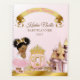 Dulce princesa con su corona y su carruaje frente a su castillo. Hecho en rosa y oro.