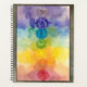 Pintura acuarela de una interpretación abstracta de los chakras. Cada uno de los siete símbolos, en sus colores representativos, está apilado verticalmente.