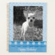 Bolsa de Regalo de Aniversario Feliz de Perro Chihuahua. Una linda foto del perro Chihuahua deseando "Feliz Cumpleaños" con puntos azules en el fondo.