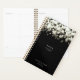El planificador de moda, de un negro rico y con una columna dorada, presenta un borde superior de luminosas lámparas de bokeh en tonos blancos y champán. Personalizar con cuatro líneas de texto personalizado, haciendo de este planificador una elección perfecta para empresas, citas o tareas diarias.