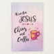 ¡Este es un planificador cristiano único "uno de bondad"! Presenta la Cómica Cita Cristiana..."Corro sobre Jesús, caos y café"... y una Hermosa jarra de café caliente rodeada de flores y corazones! Diseño original de arte gráfico por el artista Kerry Miller. ¡Disfrútalo!