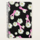 Conciencia sobre el cáncer de mama cinta rosada y patrón de margarita blanca sobre fondo negro