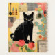 Un gato negro. Collage inspirado en la página de recortes de color amarillo retro.
