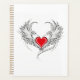 Corazón rojo pintado de forma artística con alas de ángel gris, decorado con un contorno suave negro.