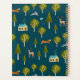 A whimsical forest-themed pattern featuring trees, foxes, rabbits, a deer, and a cozy cabin, set against a deep teal background. Perfect for nature lovers.