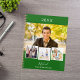 Crea tu propio collage de fotos único. Usa cuatro, cuatro de tu foto favorita. Personalizar y un año, nombre y texto. Un fondo verde esmeralda, texto blanco.