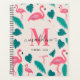 Monograma lindo hojas tropicales Planner Flamingo rosa caliente
