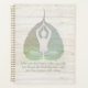 Instructor de Meditación de Estudio de Yoga / Entrenador de Vida / Curador de Salud / Maestro de Reiki / Planificadores de Citas de Terapia de Masaje. Elegante hoja verde de bodhi y yogi en pose fácil para asiento / Pose fácil de YOGA / Sukhasana Pose sobre fondo de madera blanca. "Cuando encuentras paz dentro de ti, te conviertes en el tipo de persona que puede vivir en paz con los demás".