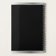 This custom planner cover boasts a sophisticated design with a sleek black background, elegantly framed by polished silver borders. Your personalized logo and company information are prominently displayed in a modern silver tone at the top, while your website address is subtly featured within a silver band at the bottom. This refined aesthetic offers a professional and minimalist look, perfect for a chic brand statement.
