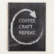 Introducing this humorous customizable planner inspired by crafting and featuring a chalkboard design with the words "Coffee, Craft, Repeat"! Elevate your daily routine with this charming organizational accessory that pays homage to your love of everything crafty! If you choose, the three words can be changed to your choice of three words using the editing tool.