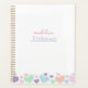 Stay organized in style with this adorable pastel hearts personalized planner. The design features a clean white background with a border of colorful pastel hearts and your custom name in playful fonts. The back cover has a lovely lavender color for a soft, charming touch. Perfect for students, teachers, or anyone who loves cute stationery!