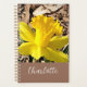 Fotografía de un hermoso daffodil amarillo en el jardín con texto personalizado