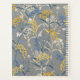Flores silvestres modernas en tonos atrevidos de amarillo mostaza, azul marino y gris piedra con un enfoque en flores de margarita blanca y racimos de bayas de serbal. Este elegante diseño de patrón floral es colorido pero dramático, y está lleno de encanto boutique con estilo.