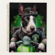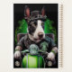 Un amigo peludo detrás de las manillares de una brillante bicicleta verde, usando un traje verde del Día del San Patricio que hace que las cabezas se vuelvan. El perro está vestido con un conjunto festivo, con una corbata verde de arco y un sombrero superior a juego que se sienta cómodos sobre su cabeza. El conjunto presenta un diseño intrincado de rocas de champú y leprechauns, lo que deja claro que este perro está listo para celebrar el Día de San Patricio con estilo.