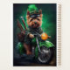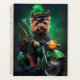 Un amigo peludo detrás de las manillares de una brillante bicicleta verde, usando un traje verde del Día del San Patricio que hace que las cabezas se vuelvan. El perro está vestido con un conjunto festivo, con una corbata verde de arco y un sombrero superior a juego que se sienta cómodos sobre su cabeza. El conjunto presenta un diseño intrincado de rocas de champú y leprechauns, lo que deja claro que este perro está listo para celebrar el Día de San Patricio con estilo.