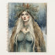 Planee sus días mágicos con nuestro Día de la Diosa de Invierno y manifieste sus sueños. Un diseño de IA único de una Bruja en un bosque nevado adornado con un tocado verde. ¡EXCLUSIVO desde arriba en la montaña!