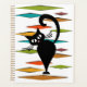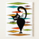 Ilustracion colorido abstracto de estilo Mid Century con gato negro y rombos coloridos decoración sobre fondo blanco