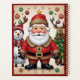 Un diseño festivo con un muñeco de nieve, Santa, ciervo y un árbol de Navidad decorado, ambientado en un fondo dorado y salpicado de flores, que evoca la calidez y la magia navideña. "Imagen original generada por Meta AI. La IA generó obras de arte. Con licencia CC BY-SA 4.0."