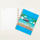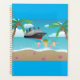 Planee sus días con una dosis de inspiración tropical utilizando este planificador de espiral con una divertida escena de playa personalizado. Una familia feliz nada cerca de un barco de crucero, rodeado de palmeras y olas del océano. Perfecto para organizar planes de viaje, recuerdos de viaje o agregar un poco de sol a su rutina diaria. Ideal para los amantes de la playa y de los cruceros.