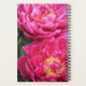 Disfruta de esta imagen de dos flores de peones fuchsia completas disfrutando del sol de verano que se muestra tanto en la parte delantera como en la parte trasera a medida que añades citas importantes en tu planificador personal. Un regalo maravilloso para ti mismo, un amigo o esa persona especial.