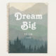 Un planificador de boho de moda con montañas azules y fondo forestal cubierto con el titular editable "Dream Big" con un tipo de letra retro blanco. Personaliza con tu nombre y año.