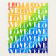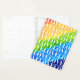 Este colorido planificador está decorado con un fondo de color arcoiris y un patrón de amor es amor en una tipografía blanca elegante.