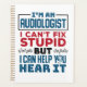 Gracioso regalo de audiología para audiólogo, estudiante de audiología o especialista en audífonos. El diseño dice: Soy un audiólogo. No puedo arreglar lo estúpido, pero puedo ayudarte a oírlo.