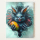 El espeluznante conejo de Pascua, el horror en el nido de Pascua. Un conejo amenazante de color azul-gris, cuyos dientes afilados sobresalen de su boca como pequeñas dagas blancas y sus ojos brillantes y verdes brillan por los aires y iluminan la oscuridad que lo rodea. Parece como si el conejo estuviera exhibiendo orgullosamente a su presa, el gran huevo de Pascua.