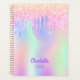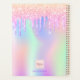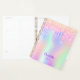 Un fondo holográfico de moda con colores pastel de unicornio y arcoiris en verde menta rosa y violeta. Decorada con tonterías en rosa y morado. Personalice y añada un nombre, escrito con un guión de estilo con letras a mano moderno y elegante. ¡Agrega un año. Letras de color púrpura.