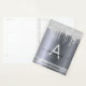 Un fondo falso plateado con elegantes goteos en purpurina plateado falso, pinturas de goteo. Personalice y agregue un nombre, una letra monográfica y un título. El nombre está escrito en blanco con un gran guión de estilo moderno con letras a mano con toques. Texto gris y negro. Para que los cambios sólo eliminen el nombre del ejemplo, deje los espacios o la emoji delante y después del nombre. Perfecto para la escuela, el trabajo o la organización de su vida personal/familiar.