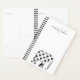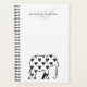 Silueta de elefante blanco y negro con patrones cardíacos linos en combinación con el nombre del monograma personalizado en la parte superior. Un planificador simple, minimalista, monogramado.