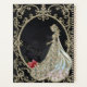 Elegancia en oro y negro. Composición cautivadora que combina elegancia y misterio. Se centra en una mujer con un vestido que fluye, su silueta resplandeciente de oro brillante contra un fondo negro profundo. El cuervo simboliza el misterio y la inteligencia y refuerza la atmósfera mística del diseño. En los alrededores florece una rosa roja, cuyo color vibrante representa pasión y belleza. Una combinación de oscuridad y luz, elegancia y misterio