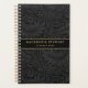 Elegant vintage black floral botanical pattern planner with a custom name in gold classic serif typography and "PLANNER" and custom year in gold modern san serif typography.