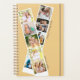 Planificador personalizado que puedes personalizar con 8 de tus fotos favoritas, tu nombre y cualquier año. La plantilla de fotos está configurada para que añadas tus imágenes, que se muestran en formato cuadrado / instagram, en simples tiras de fotos. El diseño tiene una paleta de colores moderna y elegante, de mostaza ocre amarilla y azul.