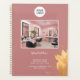 Elegante Personalizado de logotipo de color rosa Añadir de texto Foto de Planner de negocios. Inserte su logotipo y la foto de la empresa y personalizar el texto, el nombre de la empresa, la dirección y la información de contacto. Promoción de negocios y planificación de marketing o entrega para sus clientes y socios comerciales. El diseño tiene un fondo rosa oscuro y un follaje dorado elegante en la esquina. El diseño es perfecto para un pequeño negocio de belleza.