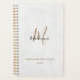 Agenda Elegante Black Gold Linen Monograma moderno Nombre