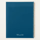 Un elegante ejercicio de diseño pesa un planificador de entrenamiento azul marino.