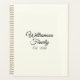 Elegante nombre de familia de guion de marfil y personalizado negro y fecha personalizada personalizado agenda Planner. Texto negro personalizado sobre fondo de color sólido y liso marfil. Este planificador funciona muy bien como una agenda familiar, empresarial y profesional.