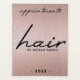Elegante y a la moda: libro de citas/planificador para peluquero, peluquería con fondo de coral de oro rosa y caligrafía manuscrita ''pelo'' en color negro profundo. Personalice con un nombre en la parte delantera y detalles en la parte posterior.