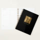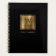 Personalice este elegante planificador con su monograma inicial en color negro decorativo y su nombre en letras de copperplate negro en un Relieve metalizado dorado falso cepillado, junto con el año u otro texto de su elección en oro sobre el sólido fondo negro.