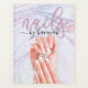 Elegante, moderno planificador de citas para técnico de uñas con fondo de perla y caligrafía manuscrita ''uñas por ' en un color violeta brillante. Personalice con un nombre en la parte delantera y detalles en la parte posterior.
