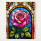 Pintura de cristal de colores vivos con un rosa central con detalles ricos y complejos. Esta vibrante composición muestra colores vivos, artesanía magistral y una eterna esencia artística perfecta para inspiraciones de diseño.