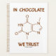 La actitud química del chocolate está viva y coleando en este planificador con la molécula de teobromina, el ingrediente activo del chocolate, junto con el dicho de que todos los chocoholics sabrán y disfrutarán: "En el chocolate confiamos". ¡Memorable planificador del humor geek de la bioquímica para cualquier fanático del chocolate!