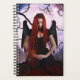 "Dark Enchantress" Un retrato llamativo con temática de fantasía muestra a una misteriosa mujer con el largo y vívido cabello rojo cayendo en cascada por su pecho y hombros. Ella usa un vestido negro profundo que se mezcla perfectamente en el oscuro y nebuloso fondo. Las alas de ángel negro se extienden desde su espalda, evocando el aura de un ángel caído o oscuro. El fondo representa una escena surrealista, de otro mundo, con ramas de árbol retorcidas y sin hojas, encerradas en un cielo crepúsculo lleno de púrpura, rosa y suaves resplandores, lo que sugiere un reino mágico o celeste. Una ligera bengala de lente añade un toque etéreo, realzando el ánimo místico.